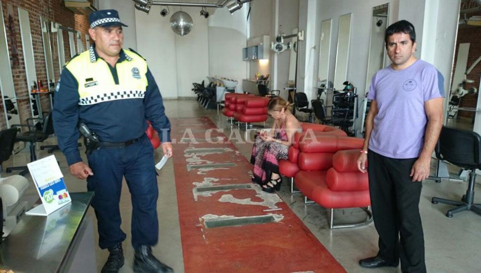 Gustavo Salazar, esposo de Cruz, relató que cuando llegaron esta mañana para abrir el negocio observaron que en el extremo derecho de la vidriera había un boquete y sangre. Al abrir, se encontraron con que les habían robado todos los productos que tenían en exhibición, secadores y planchas de alisado, entre otros objetos.