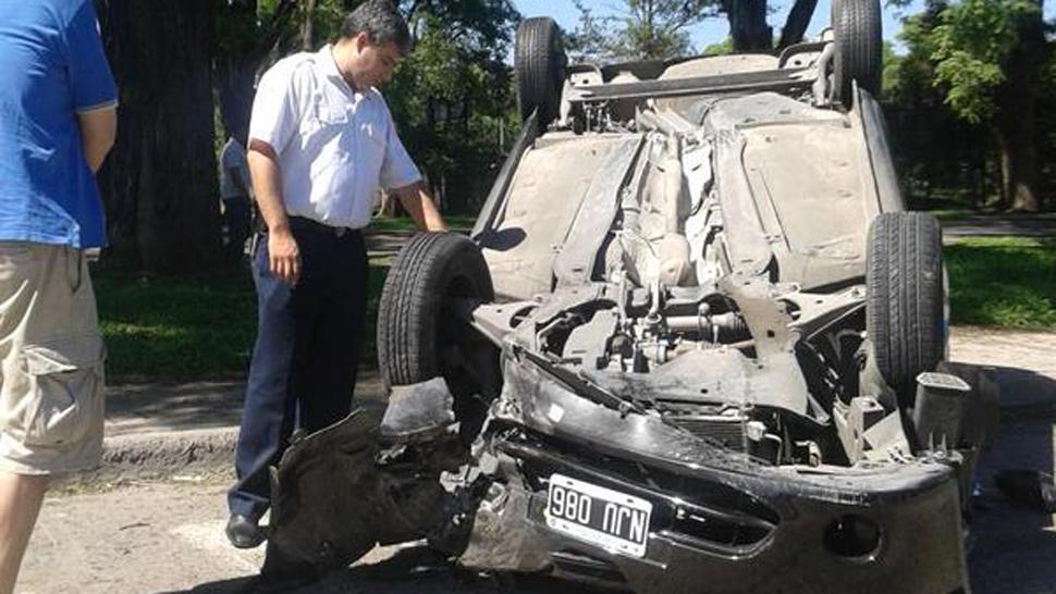 Un automóvil volcó y quedó ruedas hacia arriba luego de chocar contra una camioneta en avenida Gobernador del Campo al 500. El accidente ocurrió esta mañana entre una Toyata Hilux y un Renault Clio, cuyos ocupantes resultaron con lesiones leves.