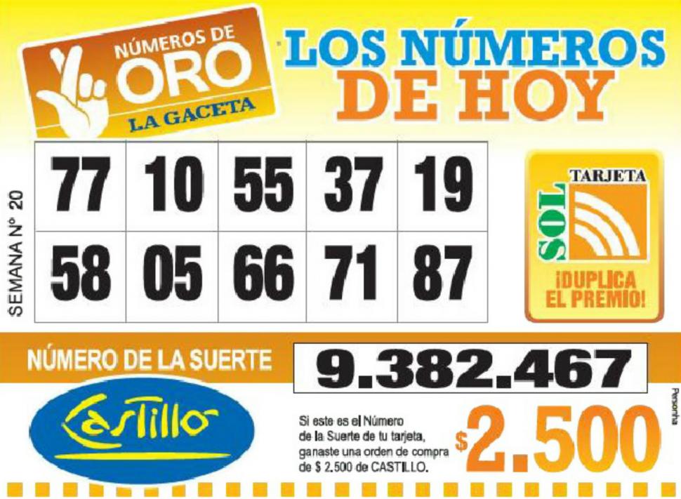 Esta es la grilla completa de los Números de Oro de LA GACETA del 25 de febrero de 2026