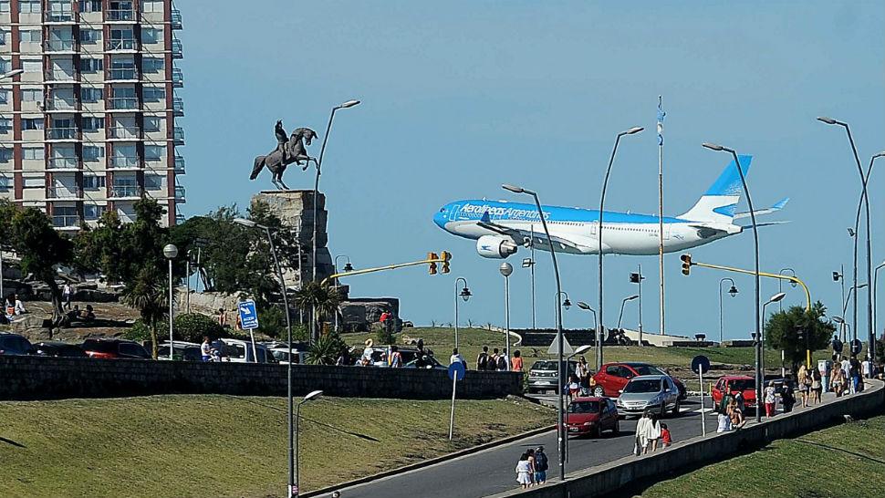 MAR DEL PLATA.- Un avión de Aerolíneas Argentinas sobrevoló esta tarde a muy baja altura frente a las playas de Mar del Plata, en el marco de una promoción turística de la compañía de bandera y como una forma de exhibir las nuevas aeronaves de la empresa.
