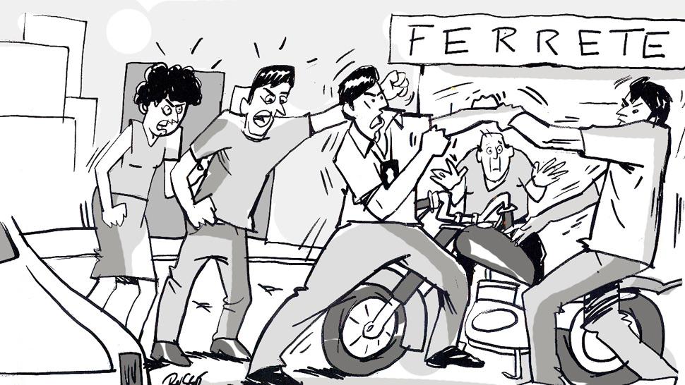 Peralta y “Taka Chico” comenzaron a pelear, según se describe en el acta. Acosta, otros clientes y los empleados de la ferretería salieron a la vereda para ver qué ocurría, y el policía habría logrado contarles, a los gritos, lo que había sucedido, mientras peleaba con el ladrón.