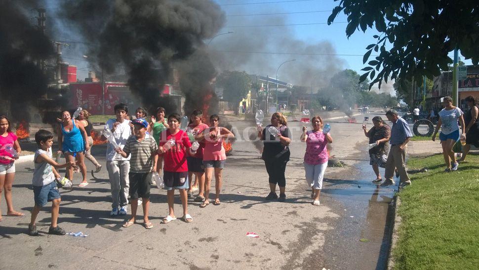 Vecinos del barrio San Roque cortan la avenida Juan B. Justo al 2.100 desde las 7 para reclamar por la falta de agua en el vecindario. Dijeron que el problema ya lleva casi una semana. “Nos vamos a quedar hasta la que SAT nos solucione el tema. A pesar de que nos quejamos, el Gobierno tampoco nos escucha”, dijo Beatriz Quinteros.