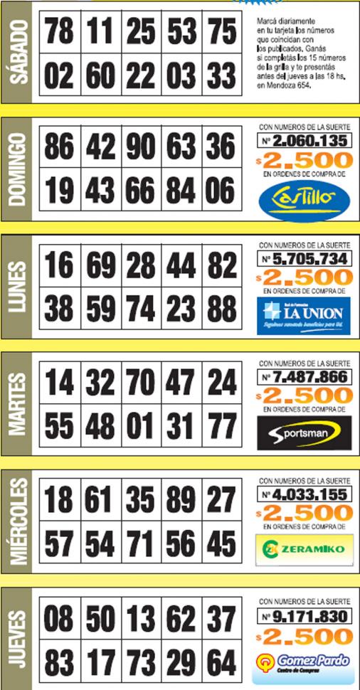 Como cada jueves, se publicó la grilla completa de los Números de Oro de LA GACETA para que los lectores puedan revisar sus tarjetas. Aquellos que completen los 15 números de una de las grillas de su cartón de Números de Oro deberán presentarse en calle Mendoza 654 hasta las 18, que cierra la semana número 29 de Números de Oro. En caso de que el ganador sea usuario Tarjeta Sol, duplica el premio.