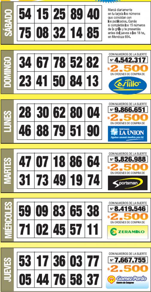 Como cada jueves, se publicó la grilla completa de los Números de Oro de LA GACETA para que los lectores puedan revisar sus tarjetas. Aquellos que completen los 15 números de una de las grillas de su cartón de Números de Oro deberán presentarse en calle Mendoza 654 hasta las 18, que cierra la semana número 31 de Números de Oro. En caso de que el ganador sea usuario Tarjeta Sol, duplica el premio.