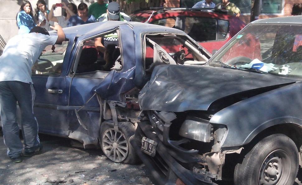 Cuatro vehículos protagonizaron esta mañana un violento accidente en avenida Sarmiento al 200. Una camioneta impactó desde atrás a un auto que fue arrastrado hasta colisionar con otros dos automóviles que estaban estacionados, informaron fuentes policiales.