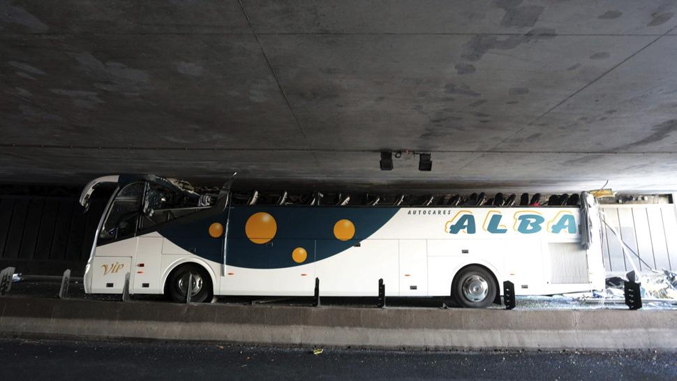 El accidente ocurrió esta madrugada en el túnel de La Madeleine, cuando el conductor del micro intentó atravesar a pesar de que la señalización advertía una altura máxima de 2,60 metros, muy inferior a los 3,65 metros que mide el vehículo, aseguró Télam.