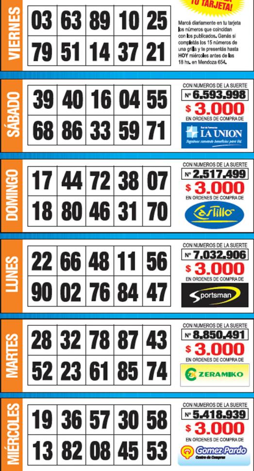 Como cada miércoles, se publicó la grilla completa de los Números de Oro de LA GACETA para que los lectores puedan revisar sus tarjetas. Aquellos que completen los 15 números de una de las grillas de su cartón de Números de Oro deberán presentarse en calle Mendoza 654 hasta las 18, que cierra la semana número 18 de Números de Oro. En caso de que el ganador sea usuario Tarjeta Sol, duplica el premio.