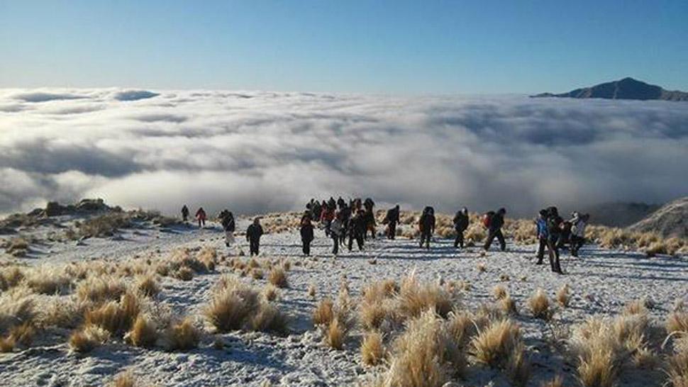La humedad y el frío provocaron una copiosa nevada en los cerros que rodean a la turística ciudad de Tafí del Valle, que se encuentra a 2.000 metros sobre el nivel del mar, en el oeste de Tucumán, y a la que se accede por la ruta provincial 307.