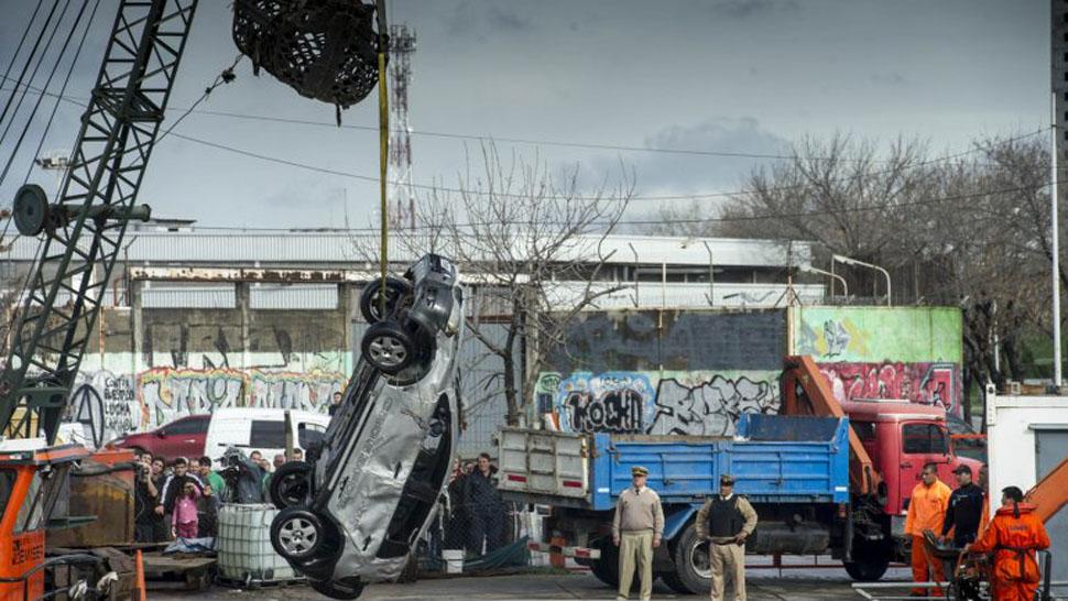 El Volkswagen Fox de los Bruera fue encontrado y sacado del río por personal de la Prefectura la semana pasada, para lo que se requirió una embarcación especial.