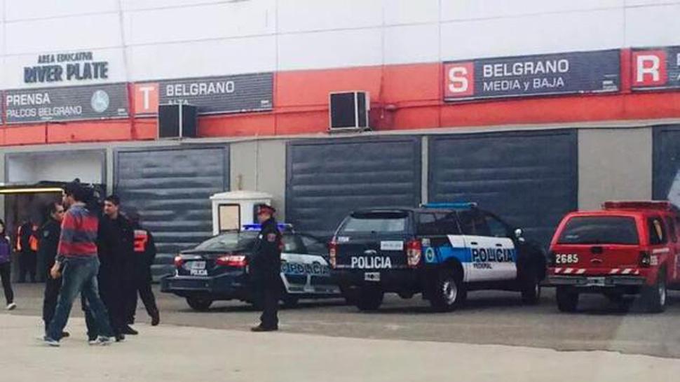 CUSTODIADO. El Monumental de River permaneció cerrado por la amenaza de bomba. (FOTO TOMADA DEL TWITTER DE PABLO CARROZZA)