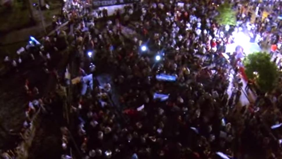 La marcha que se realizó el domingo en plaza Independencia, y que convocó a más de 20.000 personas, fue filmada por un drone, que registró la movilización desde el cielo. Con el himno como banda sonora, se puede ver al artefacto despegar y recorrer la plaza a las 23.30 de la noche.