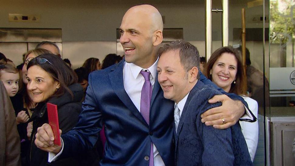 BUENOS AIRES.-Nicolás Scarpino (42) decidió legalizar su amor con Sergio Paglini, su novio desde hace seis años. El actor pasó hoy por el Registro Civil y no ocultó su emoción ni su alegría por el paso a dar.