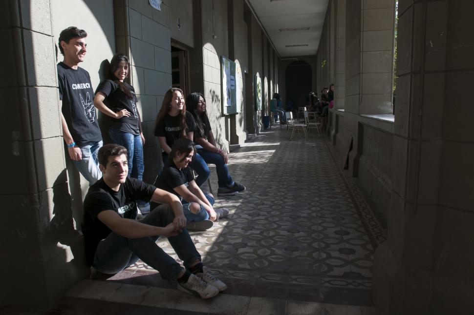 ILUMINADOS. Bajo la luz del sol, en la galería de la Escuela de Comercio n°2 que cumple 50 años, los alumnos conversaron con LA GACETA. la gaceta / foto de Inés Quinteros Orio