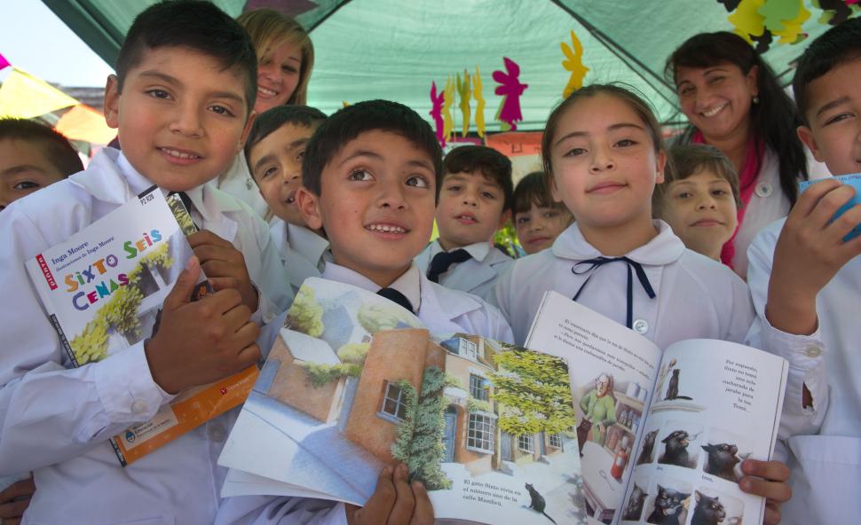 Cerca de la vereda, sobre la calle San Martín, los alumnos de la escuela nueva del barrio Crucero Belgrano habían trabajado con el cuento “Siete ratones ciegos”, ilustrador estadounidense nacido en China, Ed Young.