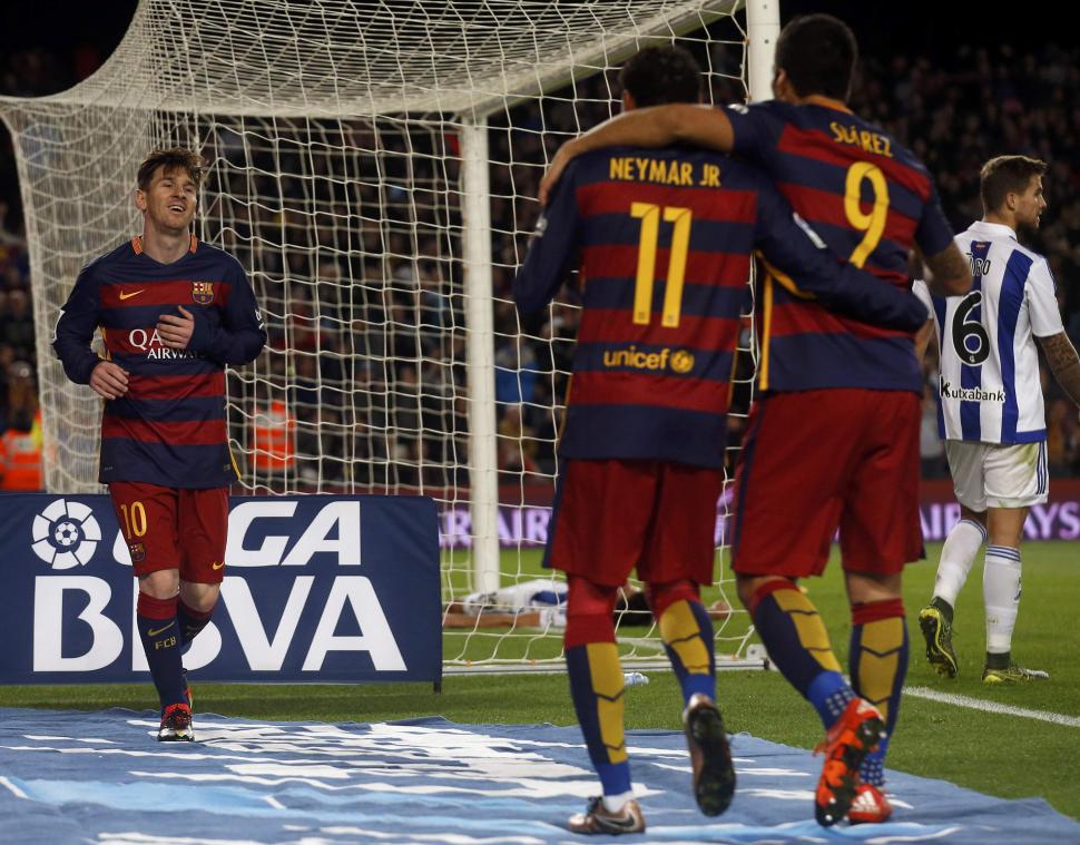 En el minuto 90, Messi definió de cara a la red como resultado de una exquisita maniobra que elaboraron el brasileño Neymar, autor de dos goles, y el uruguayo Luis Suárez, responsable del restante.