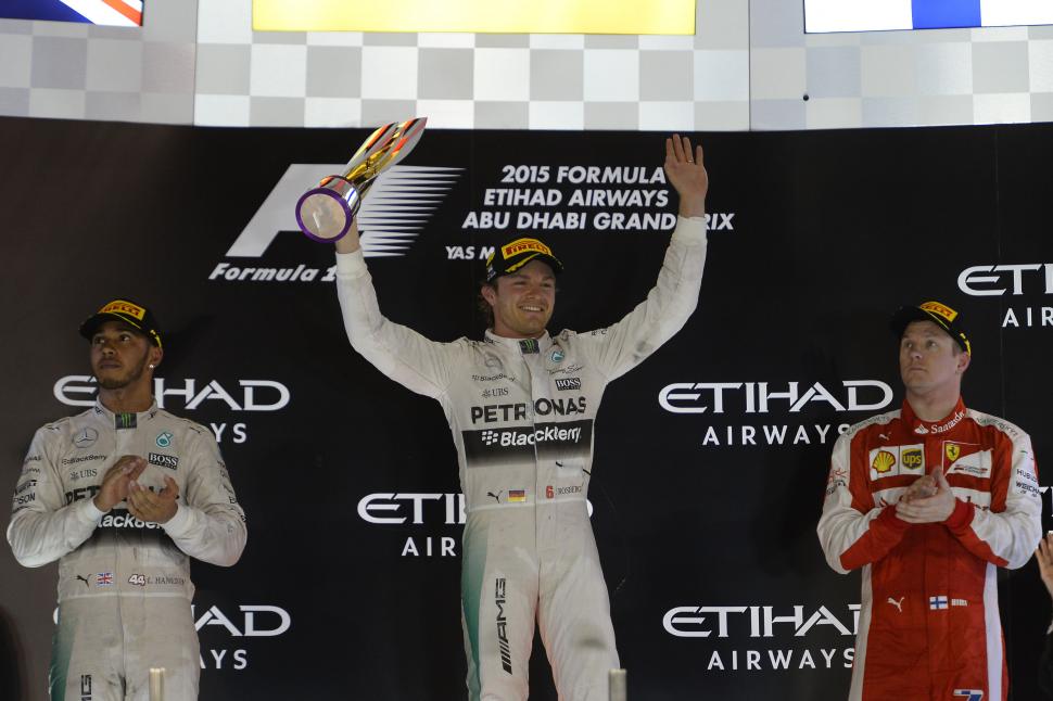 Rosberg fue escoltado justamente por el campeón británico a ocho segundos, y más atrás por el finlandés Kimi Raikkonen (Ferrari). El alemán quedó entonces con 347 unidades, detrás de las 399 de Hamilton, mientras que Vettel (que ayer se quedó fuera del podio) terminó en tercer lugar de la temporada. Por supuesto, el éxito de las “Flechas de Plata” le dio a Mercedes nuevamente un cómodo triunfo en la Copa de Constructores.