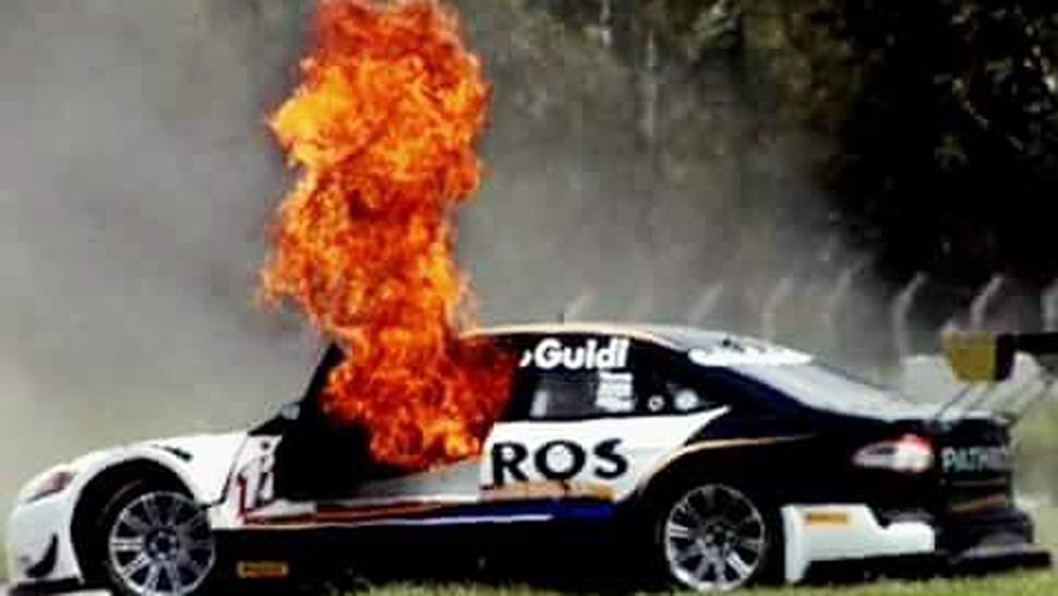 CÓRDOBA.- Una brillante y veloz reacción tuvo el piloto bonaerense Mauro Giallombardo para salir de su auto, cuyo habitáculo se encontraba envuelto en llamas, durante la final que Top Race V6 disputaba en el autódromo "Parque Ciudad de Río Cuarto", por la última fecha.