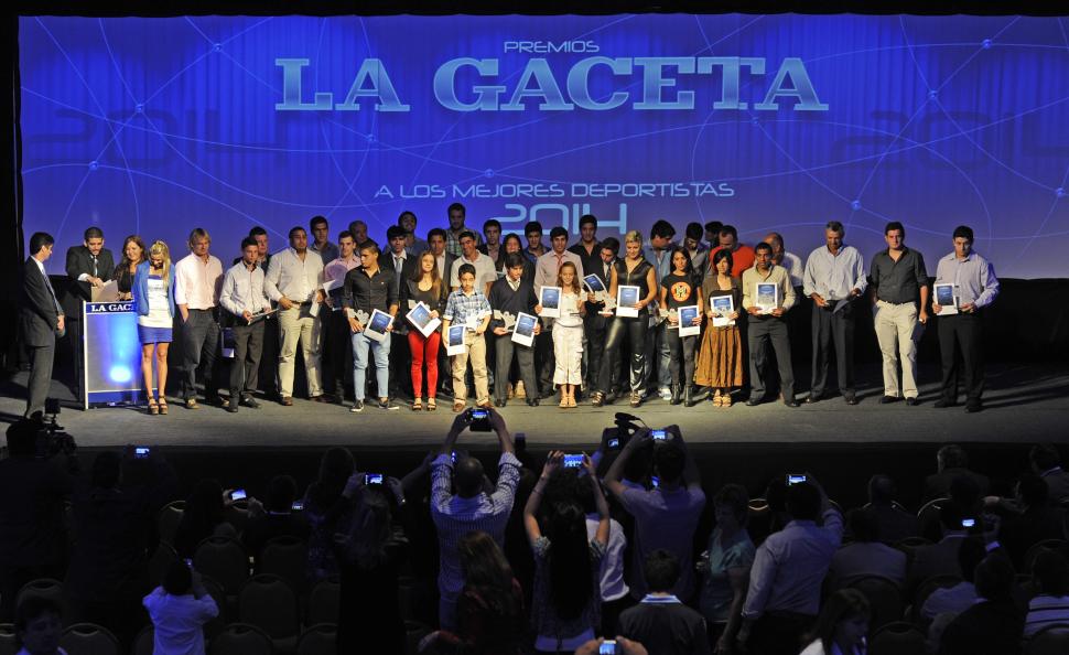 LA FOTO FINAL. Los deportistas, a fin de año se unen en el deseo de ganar el premio LA GACETA. En 2014. se los vio emocionados en el escenario del Sheraton. La gaceta / fotojuan pablo sánchez noli (archivo)