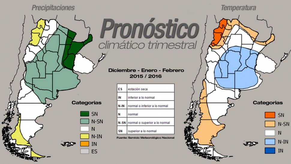 "En la región central del país habrá temperaturas levemente inferiores a las normales", aseguró Fernández. Esa tendencia a la baja no se sentirá tanto en la costa de la provincia de Buenos Aires, pero sí en el resto del territorio bonaerense, La Pampa, el este de Mendoza, San Luis, Córdoba; el centro y sur de Santa Fe y Entre Ríos, donde las temperaturas serán levemente inferiores a las normales para la época.