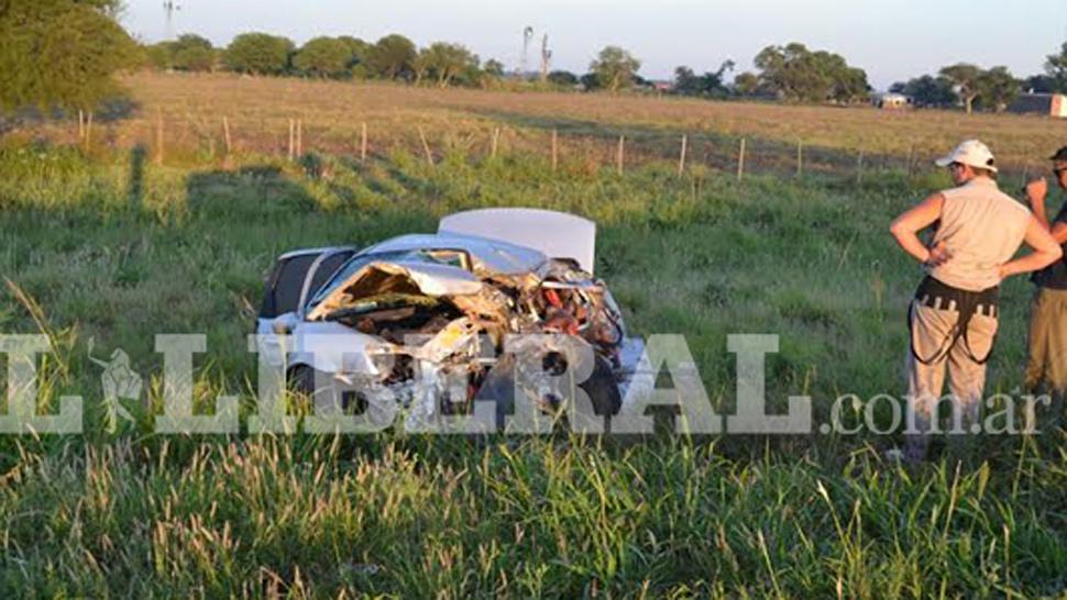 IMPACTANTE. El Chevrolet Corsa quedó destruido tras el impacto. FOTO TOMADA DE ELLIBERAL.COM.AR