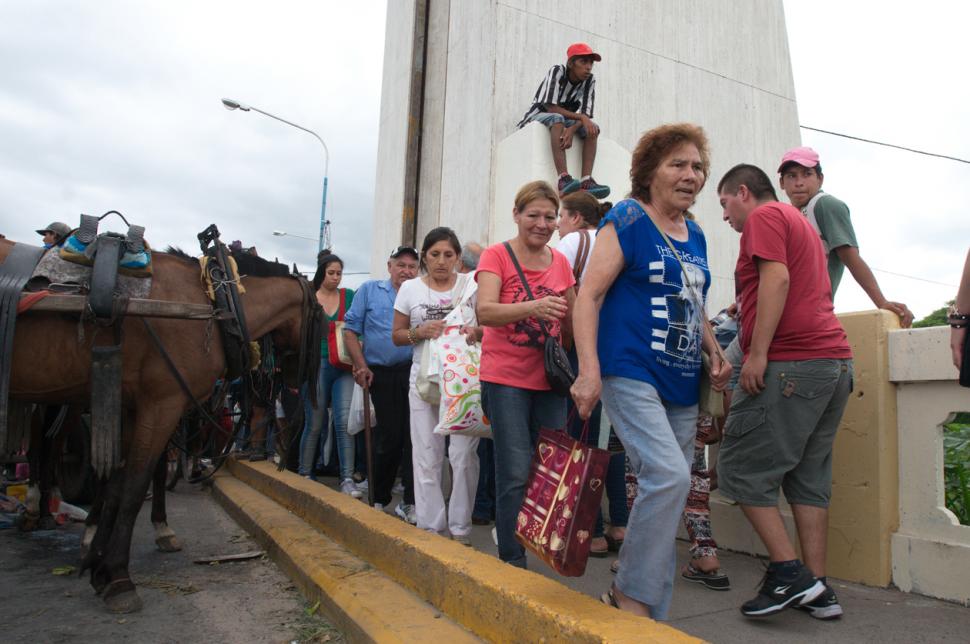 ENTRE CABALLOS Y PROTESTAS. Los peatones cruzaron a duras penas el puente Lucas Córdoba, cortado por carreros. la gaceta / fotos de maría silvia granara