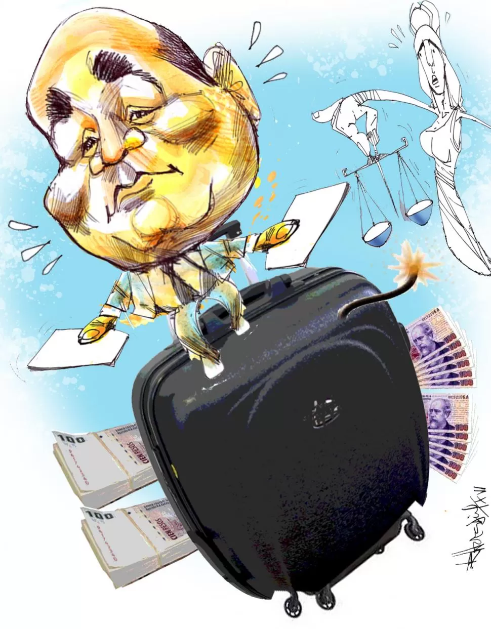 Sólo hay dos posibilidades. Una es que la Justicia hace explotar la maleta, y eso involucrará a todo Tribunales. Si hay que investigar a legisladores (con fueros) y a funcionarios (con privilegios procesales propios del cargo), sólo procede una investigación jurisdiccional que lleva adelante un juez, pero en la que también tiene vista el fiscal. La otra opción es que la misma Justicia se lleve la bomba a su palacio para archivarla y hacerse cargo de la onda expansiva.