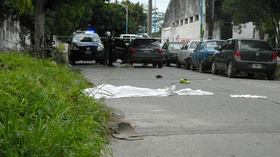CRIMEN. Leandro Frías, desplomado en al pavimento de Marco Avellaneda al 1100.FOTO ENVIADA POR UN LECTOR.