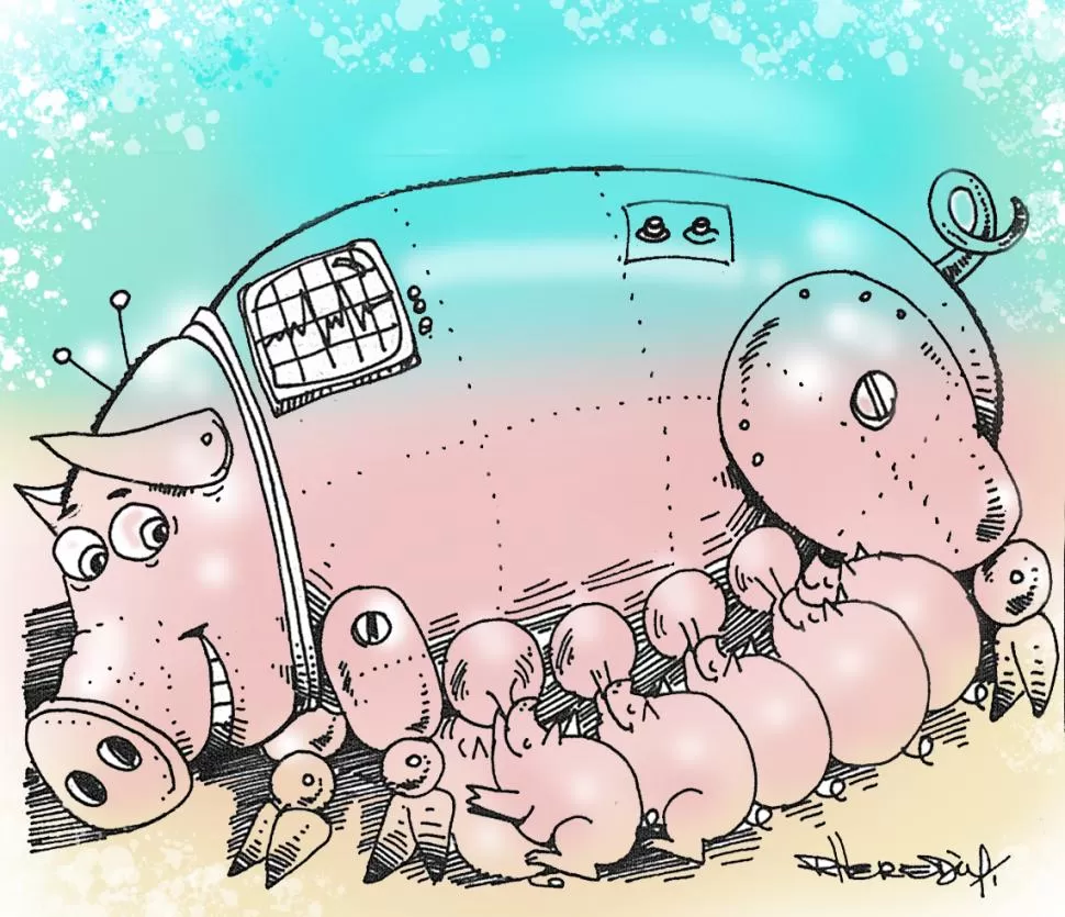 Con motivo del próximo Día del Animal, algunas maestras ya estarán pensando el tema “Mi animal preferido”, para que los alumnos se luzcan con una linda composición. Fácil es imaginar que el perro se llevará las palmas. Y también es fácil imaginar que ningún chico lo elegirá al pobre chancho. Ni siquiera -y eso es triste- el hijo de un chanchero. Pasa que este animalito siempre ha tenido “mala prensa”. Muchos refranes lo desmerecen. El más conocido es “chancho limpio nunca engorda”. Pero la verdad sea dicha: ese refrán ha perdido vigencia; hoy los criaderos de chanchos son tan asépticos como un quirófano. Sí, chanchos “chanchos” eran los de antes. En el “Refranero de uso argentino”, de Pedro L. Barcia y G. Pauer (Emecé, 2013), hay más de 30 refranes en la entrada “chancho”. Uno que otro lo valora, como este: “Hasta del chancho se aprende, nadie le enseña a rumbear”. Al respecto, he leído que el naturalista Guillermo E. Hudson alaba su inteligencia. ¿Puede el chancho ser mascota? Pues claro que sí. Como todo animal pequeño, los lechoncitos son adorables, suaves, enternecen. Alguna vez leí el caso de una mujer que crió un cochinillo en su departamento. Tiempo después tenía la compañía de una bestia de casi 200 kilos. Y conozco de primera mano este simpático caso con un dramático final. Un señor lleva a la casa un lechoncito para futuro alimento de la familia. Aunque el animalito ya comía, sus hijas le daban la mamadera, lo vestían con ropas de muñecas, y el muy mimoso dormía en la cunita de una muñeca. Las seguía como un perrito. Pero se hizo grande, el padre lo carneó y lo cocinó. Y bien. Las hijas no quisieron comer la carne de su querida mascota. Y hablando de comer. No hace mucho tiempo, se divulgó -de sorpresiva manera- que la carne de cerdo tiene efectos afrodisíacos. Viene al caso pues traer a colación que, según el viajero Iván de Pineda, en Burdeos, una vez al año, se le rinde homenaje al chancho en la fiesta “Tue Cochon” (Chancho muerto), de origen campesino, y se celebran las virtudes del cerdo y lo que significa para la vida y la dieta de esa región de Francia. Por algo será. Una expresión muy original se usa cuando a alguien que está pidiendo mucho le decimos: ¡pero vos querés la chancha y los veinte! Y como hay gente “pechadora”, lo máximo es pretender la chancha, los veinte... ¡y la máquina de hacer chorizos! Y hablando de chanchas. Una especial mención se merece la mamá chancha. Es admirable. Amamanta a sus bebitos durante cinco minutos una vez cada hora. Para tal fin, se acuesta de costado y exhibe su vientre, llamando con gruñidos a sus pequeñuelos durante un minuto. Luego, otros gruñidos mediante, ellos comienzan la succión. Cuando termina el flujo de leche gruñe en forma más lenta como calmando a las crías, se para y esconde el vientre, dando por terminada la sesión. Estas observaciones fueron realizadas por un estudioso norteamericano que inventó una “chancha robótica” para los criaderos (aparecidas en este diario en un interesante artículo sobre tal invento; 7/4/1991, página 4, 3º Sección). Cada lechón en su teta es el modo de mamar, dice sabiamente el viejo Vizcacha. El robot tiene tetas para todos. Lo curioso del caso es esto: los lechones no desarrollan conductas agresivas pues no se pelean y no quedan con hambre. Así pues, chanchos limpios y tranquilos. Avances tecnológicos “del campo” que le dicen. Ah, dicho artículo tiene una simpática ilustración del dibujante Ricardo Heredia.