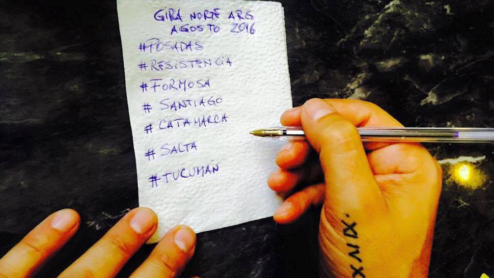 No Te Va Gustar, la banda del momento, anunció hoy que vendrá a Tucumán en agosto, como parte de su gira por el norte del país. La información surgió de una fotografía que publicó la cuenta oficial del grupo uruguayo en la que se ve la mano del cantante y guitarrista Emiliano Brancciari diagramando los shows por el norte argentino. En la lista también figuran Posadas, Resistencia, Formosa, Santiago, Catamarca y Salta.