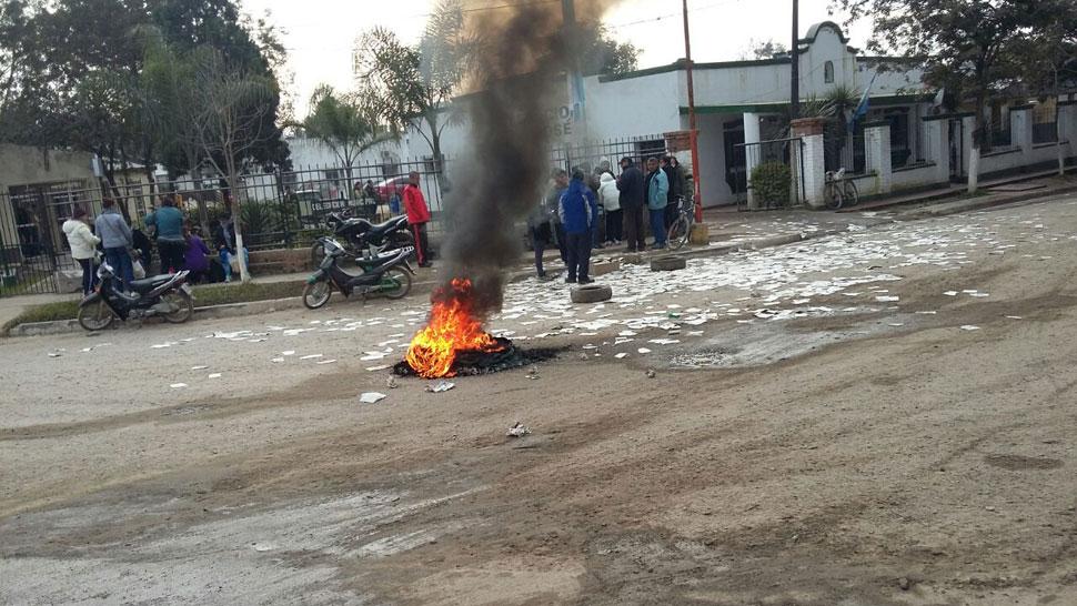 SAN JOSÉ. Quemaron gomas frente a la delegación San José de la Municipalidad. FOTO ENVIADA POR WHATSAPP
