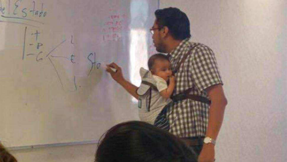 El docente contó por queé ayudó a Salas: "tengo una alumna que no ha desertado la escuela a pesar de sus distintos roles, por eso decidí cargar a su hijo, sin interrumpir la clase para que tomara apuntes".