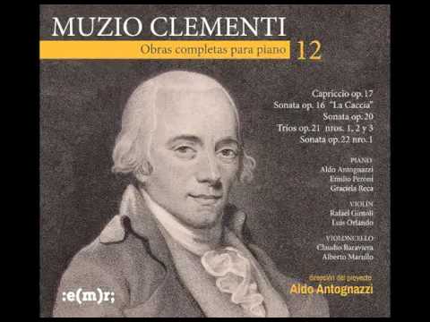 Brincan. Corren. Juegan. Tal vez a la pilladita. O a la escondida. Beben. Ríen. Un alborozo de duendes piruetea en el corazón de tres instrumentos. Se hamacan en el allegro di molto del Re de la Sonata Op. 21 N° 1. Aldo Antognazzi (piano), Rafael Gintoli (violín) y Claudio Baraviera (chelo) están despabilando el alma de Muzio Clementi (1752-1832), prodigio italiano que tuvo la mala suerte de ser contemporáneo de Mozart, quien lo criticó, pero le pirateó el tema principal de su sonata en Si bemol Mayor para usarlo en su ópera “La flauta mágica”. Desde 1990, Antognazzi, uno de los destacados pianistas argentinos, viene grabando la obra completa para piano (incluye dúos y tríos) de don Muzio, dándoles participación a otros artistas. Se estima que serán en total 30 cedés. En este volumen 12, también tocan el Trío Paraná (Graciela Reca, Luis Orlando y Alberto Marullo), Emilio Peroni (piano), Gintoli y Baraviera. Antognazzi, por su parte, interpreta con maestría las Sonatas Op. 20 y 22 N° 1 y el Capriccio op. 17. Este romano, pianista, compositor, pedagogo, fabricante de pianos, pasó a la historia por su colección de 100 estudios Gradus ad Parnassum, que se emplea aún en nuestros tiempos, aunque su obra quedó injustamente relegada. Gran labor de Antognazzi por resucitar esta música que le canta a la vida.