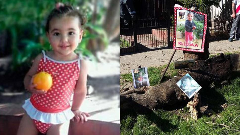 El hecho ocurrió el viernes último en Merlo, en la calle Beruti, entre Callao y Tacuarí. La familia había solicitado sin éxito la remoción del árbol a la Municipalidad, debido a que su tronco ya estaba seco y corría riesgo de caerse, lo que finalmente sucedió. Paloma, de dos años, jugaba en la vereda de su casa ese día cuando el tronco se le vino encima. Si bien fue rescatada con vida, murió poco después en el hospital Eva Perón.