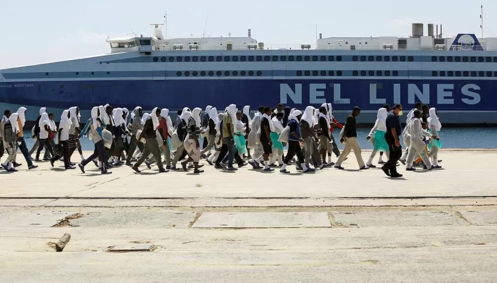 AUGUSTA, Italia.- La imagen muestra a migrantes sirios al llegar al puerto de Augusta, luego de ser rescatados por la Marina italiana. La situación en Italia es compleja, porque creció un 12% la cantidad de refugiados que llegó por mar al país en julio, en comparación con el mismo período del año anterior. (Télam)