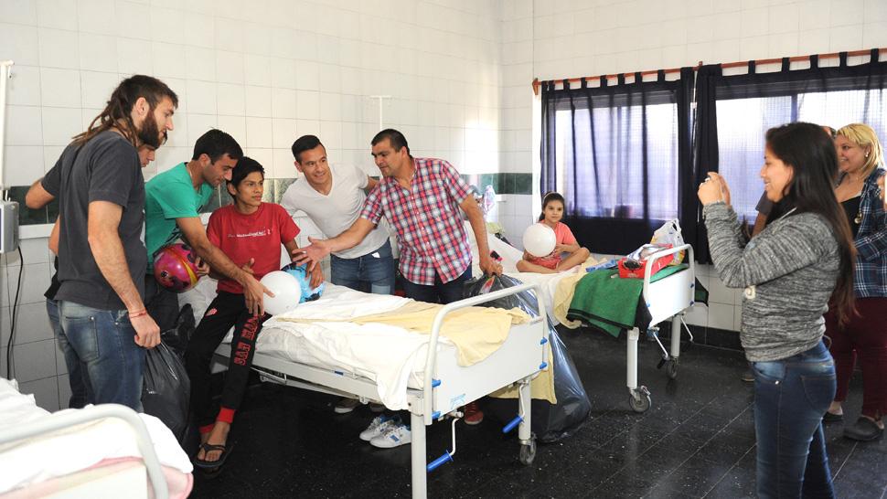 Esteban Goycoechea, Sergio Viturro, Diego Bucci y "Leo" Rizo junto al "Mono" Velardez (entrenador de arqueros) fueron algunos de los que pasaron por el hospital sacandoles una sonrisa a lo niños del lugar.