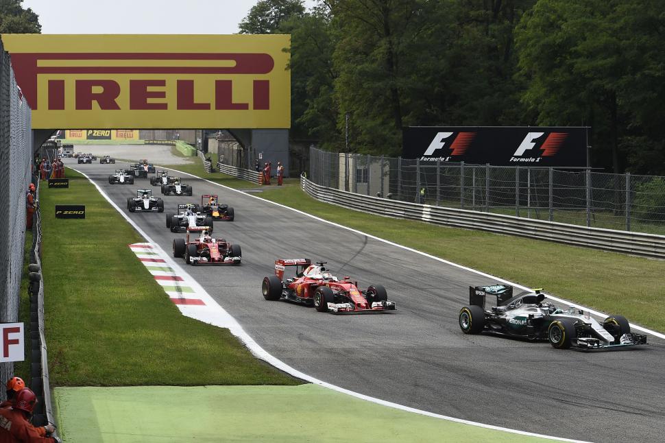 REALIDAD. Un Mercedes adelante, las Ferrari atrás. Pasó de nuevo en Monza. Prensa Pirelli