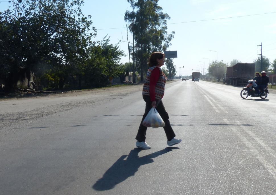 Ruta 38 esquina Mariano Moreno, en Monteros. Karina Romano se apresta a cruzar. Necesita llegar hasta el otro lado para hacer las compras del día. Toma coraje y se lanza entre los autos. Si hubiera dudado un par de segundos más, quizás esta nota estaría relatando un accidente, dice mitad en broma mitad en serio la joven madre de tres niños. Ya está en el otro extremo con cara de “lo logré”, aunque eso también le costó un par de bocinazos. “No se puede vivir así jugándonos la vida todos los días”, dice.