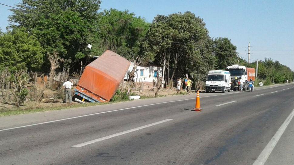 Un camión volcó esta mañana sobre la Ruta Nacional 38, a la altura del kilómetro 701, en La Florida, y terminó a metros de una casa.