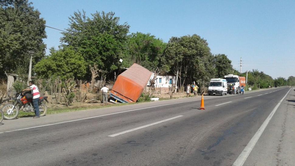 Cuando transitaba por la ruta 38 a la altura de La Invernada, un camión que circulaba vacío se cruzó de carril, chocó contra una columna y volcó sobre un alambrado (foto), a metros de una casa. El único herido fue el chofer, quien se encuentra fuera de peligro.