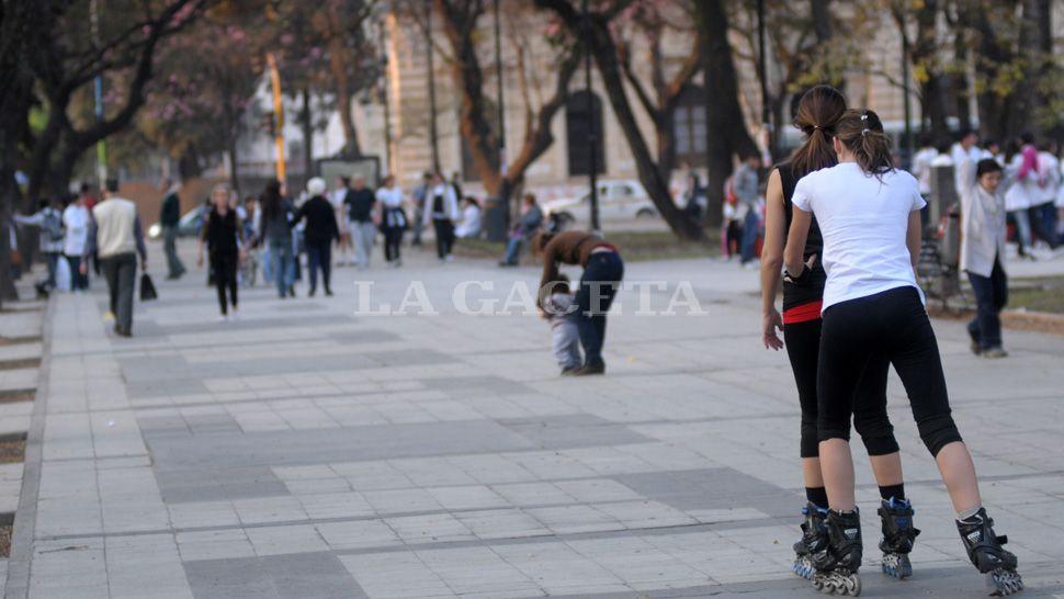 PLAZA URQUIZA. Las buenas condiciones del tiempo hace que el paseo se llene durante las tardes. ARCHIVO LA GACETA