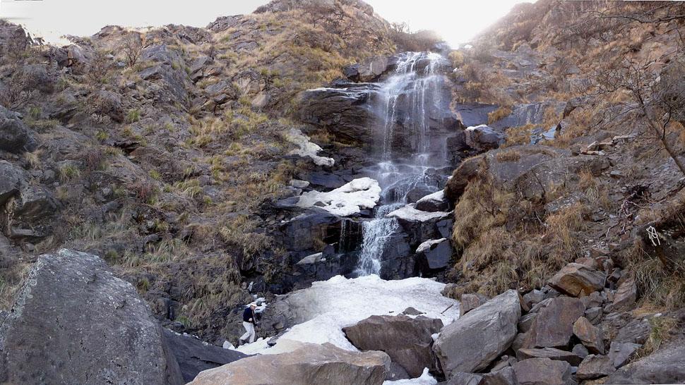 Otra posibilidad es trasladarse en vehículo hasta la toma de agua, donde termina el camino de tierra y están las últimas casas, y desde ahí tomar el sendero que se inicia en una suave pendiente tapizada de pastos bajos. Por ese camino se sigue la margen derecha del río y se llega a la caída de agua por la base del cerro.