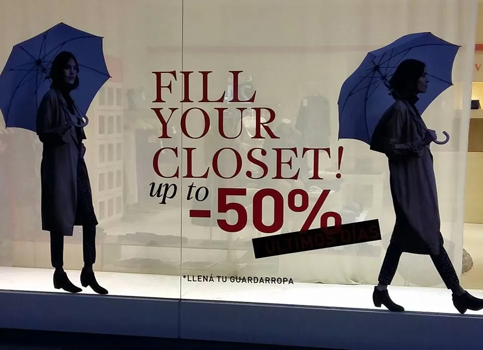 Esta secuencia de fotos no fue tomada en ningún centro comercial (conocidos como shopping o mall) de Estados Unidos, sino en un centro comercial en Tucumán. Yo hablo el inglés, lo escribo, lo leo. Pero no por ello voy a perder identidad en mi país con mi riquísimo idioma español. Entré a uno de los negocios y le pregunté a una empleada haciéndome el ignorante y pregunté que era “Fill”, y me contestó que era una marca. Deben perder ventas porque la gente no debe saber que es “sale off”. Debe creer que sale a la venta repelente para mosquitos. Después no vengan a decir yankis imperialistas, oligarcas, capitalistas y toda esa estupidez típica nuestra. Viví en los Estados Unidos, y admiro esa nación y su gente, por el país que tienen. Pero no por eso tengo que hablar en inglés en mi país. Lo que es peor es que en dos de esos carteles en inglés tienen errores ortográficos y semánticos. Se pueden leer frases como “rock your sale”; “Last chance”; “Have you seen pepe’s sale”. Con error ortográfico, todas estas vidrieras en un rango de 30 metros. Y la influencia no termina ahí solamente: cuando uno compra una gaseosa en un quiosco, a uno le ofrecen “sorbete”, ¿desde cuando? ¡Desde que aparecieron las novelas mejicanas! Para mí hasta mi muerte serán pajitas.