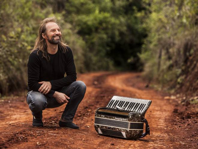 En la actuación de esta noche, en el teatro San Martín, el compositor, junto a su reconocible acordeón, presentará su penúltimo trabajo discográfico, “Tierra Colorada en el Teatro Colón”, un registro en vivo de su concierto en la sala mayor de la Argentina. En esa ocasión contó con la participación especial del violinista Rafael Gíntoli y de la orquesta de cámara Estación Buenos Aires. Se trata de una puesta netamente camarística, en la que va repasando algunos de sus trabajos anteriores y otros inéditos de su discografía.