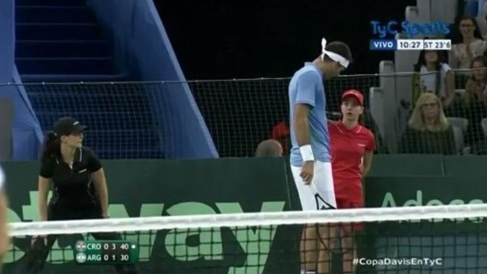 Juan Martín del Potro mostró hoy su solidaridad en plena final de la Copa Davis cuando se acercó a una de las ballgirls, encargadas de recuperar y alcanzar pelotas, luego de ser golpeada por un lanzamiento de Marin Cilic.