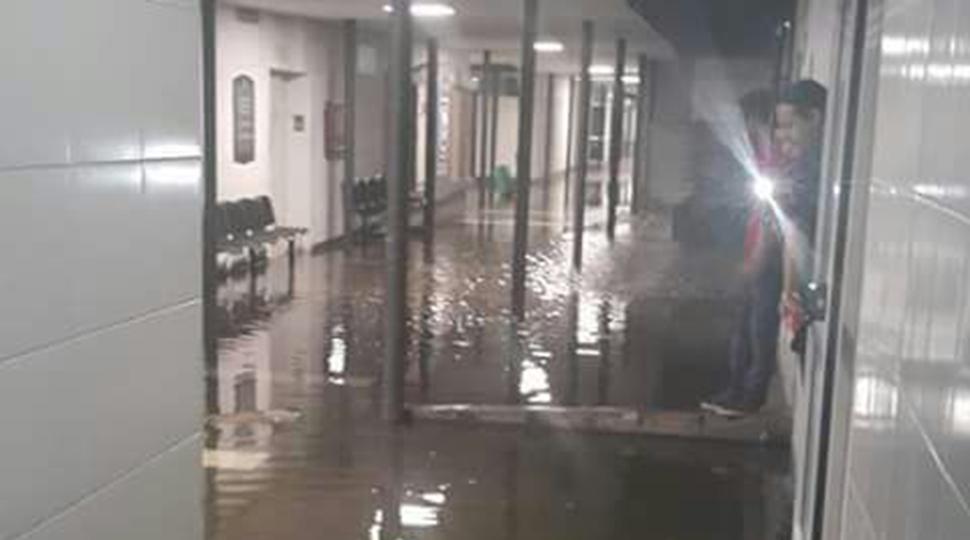 El hospital Centro de Salud, que funciona en la capital provincial, sufrió anoche la consecuencia de la lluvia. Un lector mostró a través de varias fotografías cómo el agua circuló por los pasillos del edificio, condicionando varios servicios.