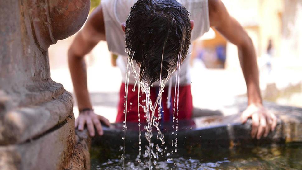 EN BUSCA DE ALIVIO. Un chico se moja la cabeza en una fuente. LA GACETA / ARCHIVO