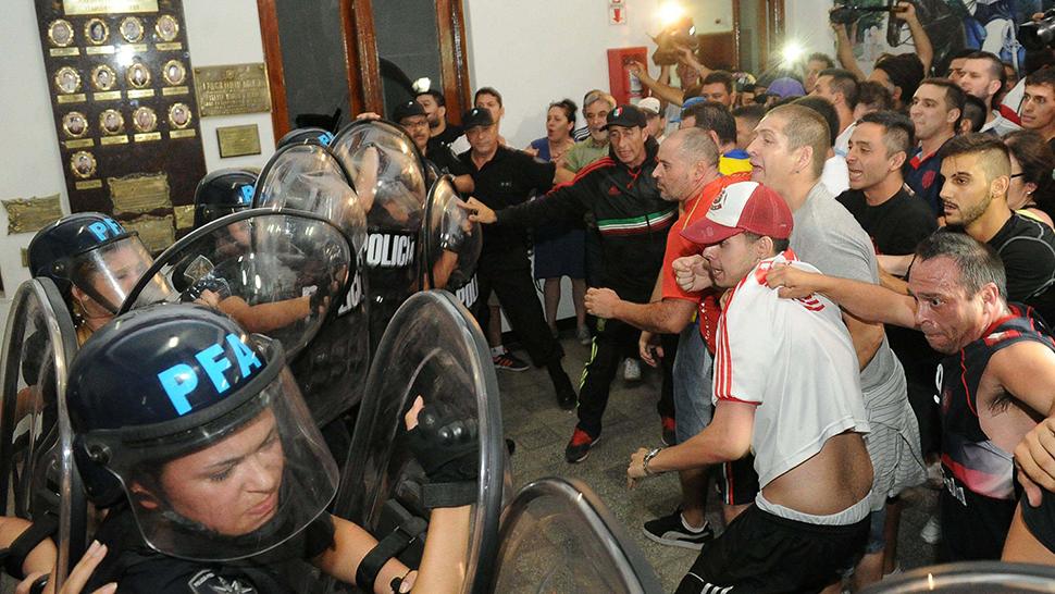 Los manifestantes coparon la seccional, ubicada en Bonorino al 250, y los alrededores de la comisaría, al grito de "que se vayan todos", "son todos chorros/la puta que los parió" y "corruptos hijos de puta/la puta que los parió".