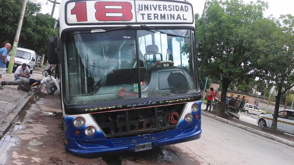 Una vez atrapado, los pasajeros tuvieron que bajar de la unidad a la espera de una nueva, mientras recién por la mañana personal de la empresa logró retirar el colectivo.