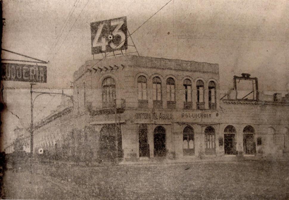 FRENTE A LA PLAZA. Borrosa imagen de la intersección de Laprida y San Martín, tomada antes de la demolición.