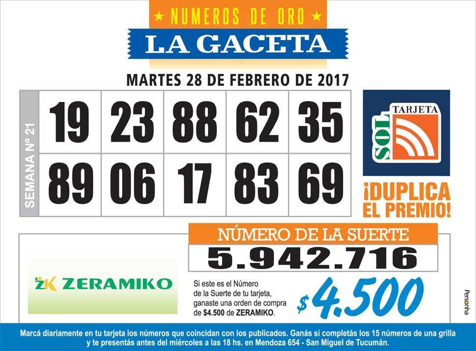 Los Números de Oro de LA GACETA del domingo 22 de febrero de 2026